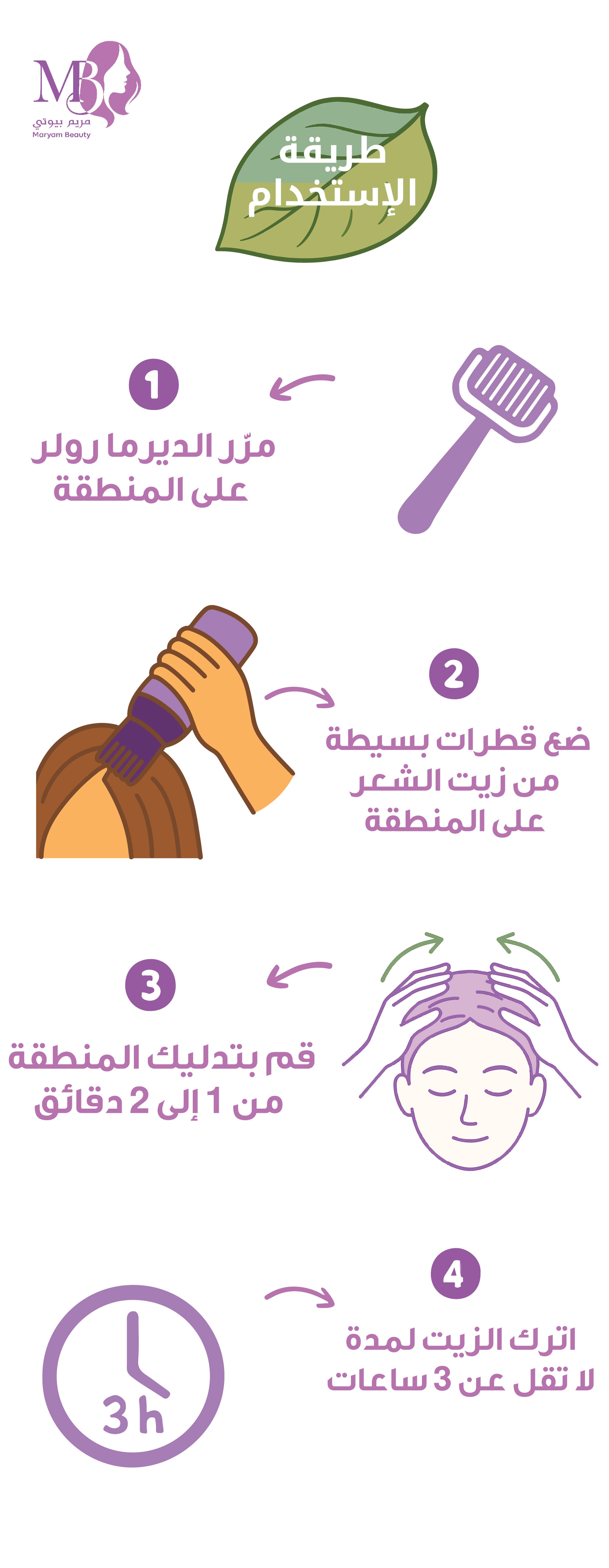 - ضعي كمية مناسبة من زيت المشاط على فروة الرأس والشعر.